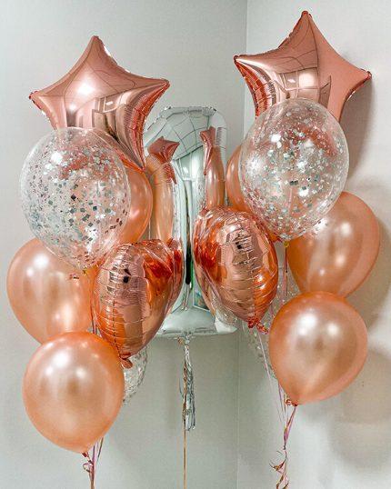Воздушные шары розового золота могут быть использованы как основной элемент декора или как дополнительный акцент. Они могут быть различных форм и размеров — от классических круглых до оригинальных фигурных.
