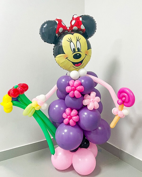 Фигурка Минни Маус с цветами из латексных шариков и Фольгированная голова Минни Маус.